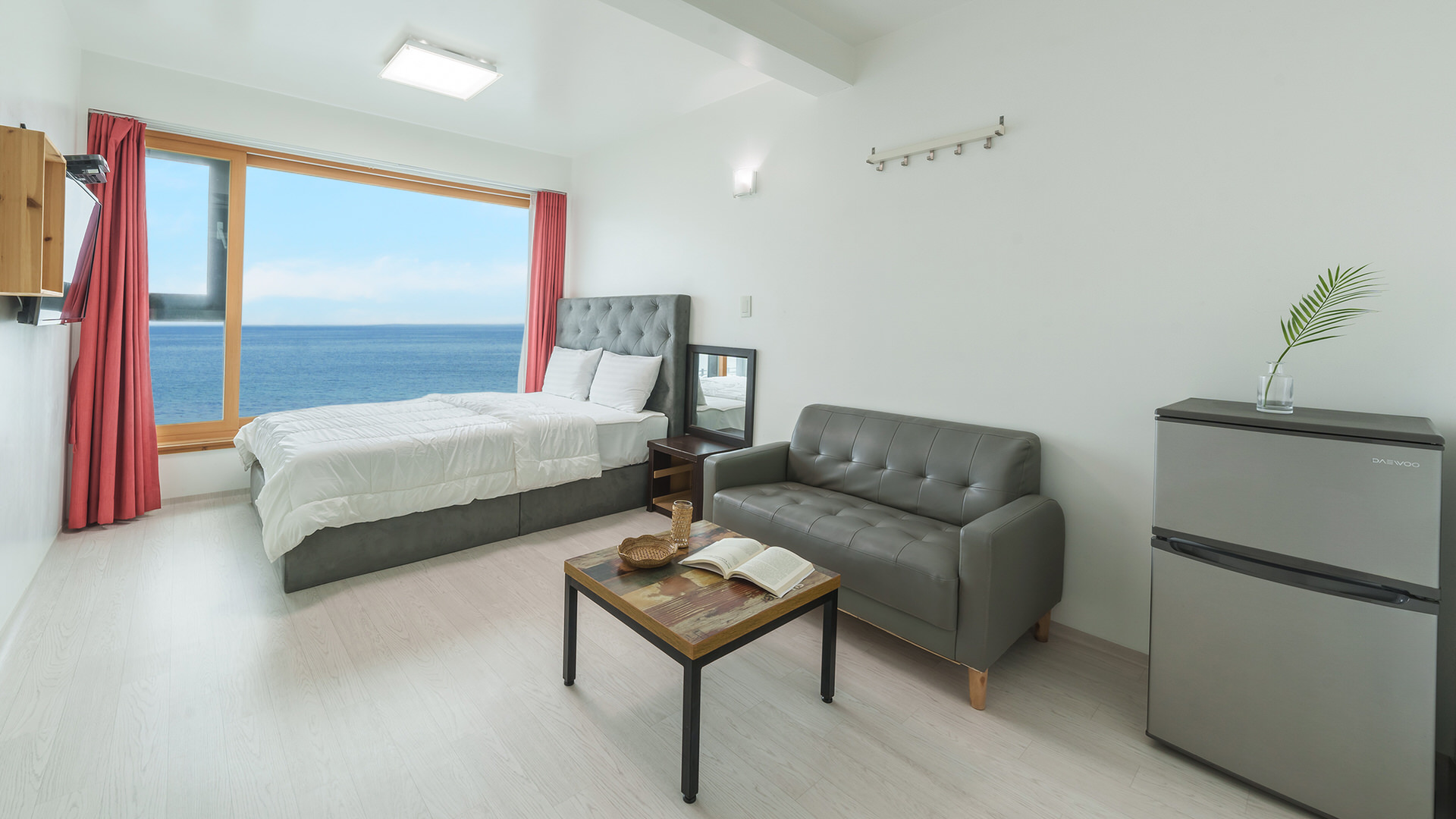 - 집기품목 : TV, 금연, 냉장고, 드라이기, 린스, 바디워시, 샴푸, 에어컨, 와이파이, 침대방, 커피포트, 타월, VOD, 욕실용품, 바다전망